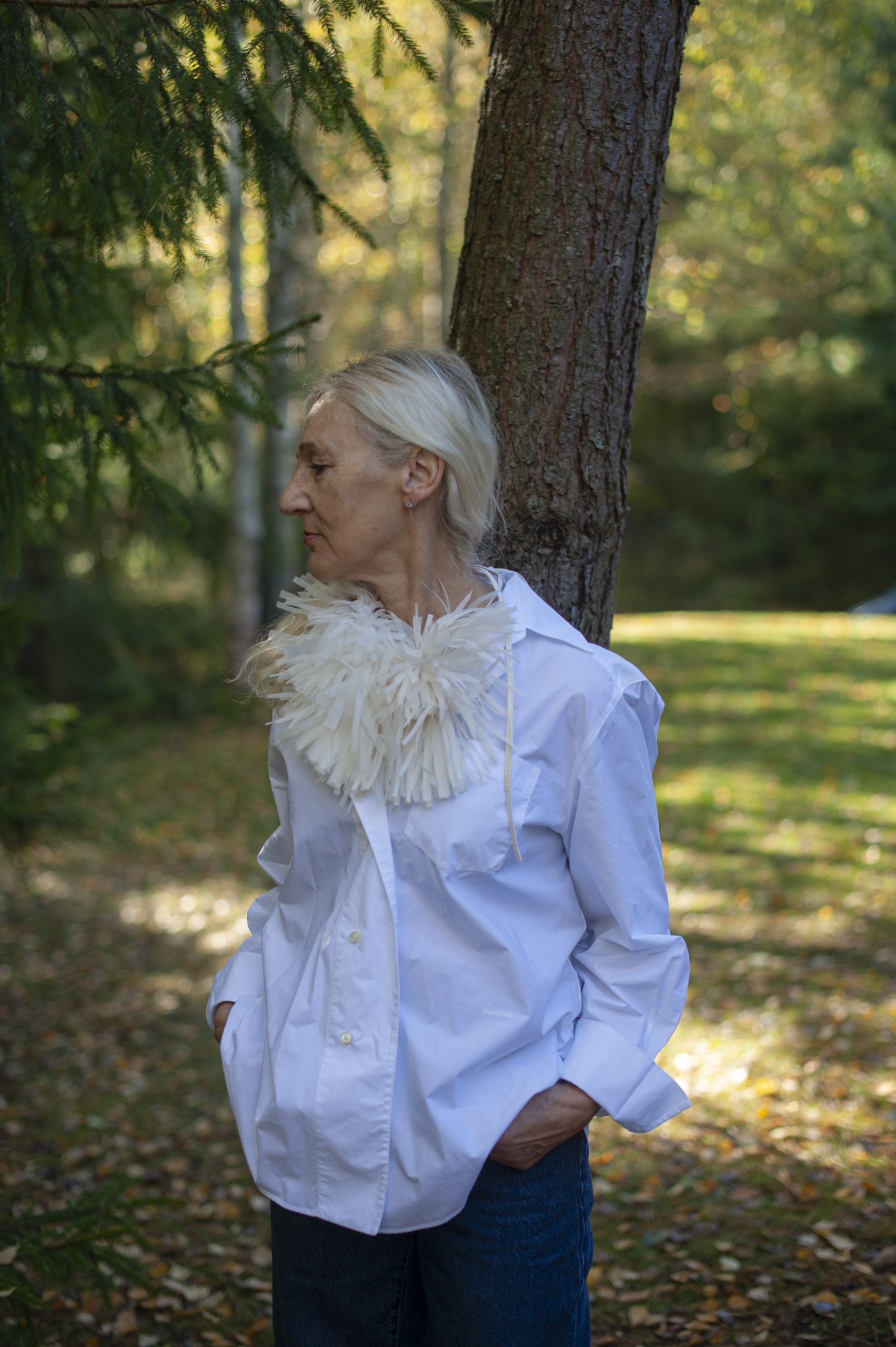 Tai rankų darbo kaklo papuošalas, pagamintas iš 100% šilko pluošto.