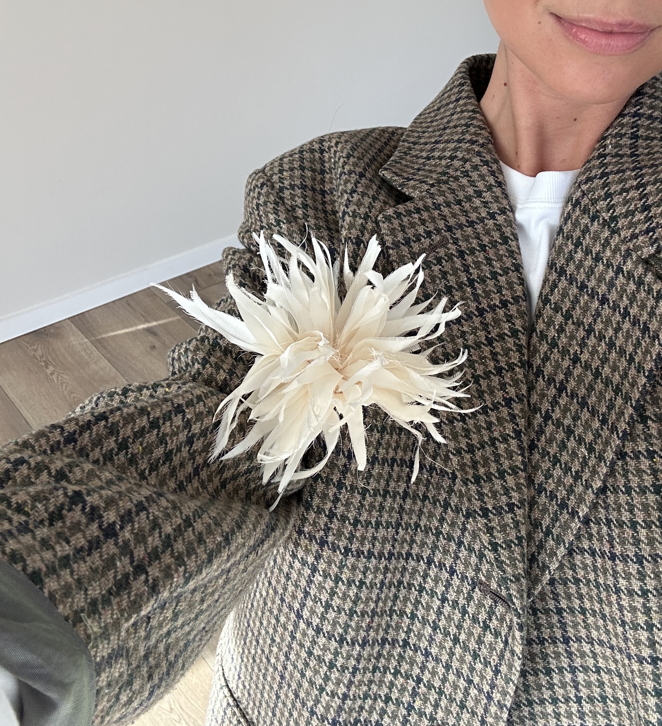 Tai rankų darbo sagė, pagaminta iš natūralaus šilko.